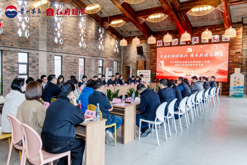 為深入學習貫徹習近平新時代中國特色社會主義思想,學習黨的二十大及二十屆三中全會精神,以黨建引領發(fā)展,促進黨建與業(yè)務工作融合,3月28日下午,茅臺集團安徽區(qū)域黨建小組聯合安徽省徽商紅府連鎖超市黨支部開展“黨建引領促振興 攜手共進謀新篇”黨建共建活動,茅臺集團安徽區(qū)域黨建小組成員,商之都領導班子成員,徽商紅府連鎖超市黨支部支委委員等共38人參加。