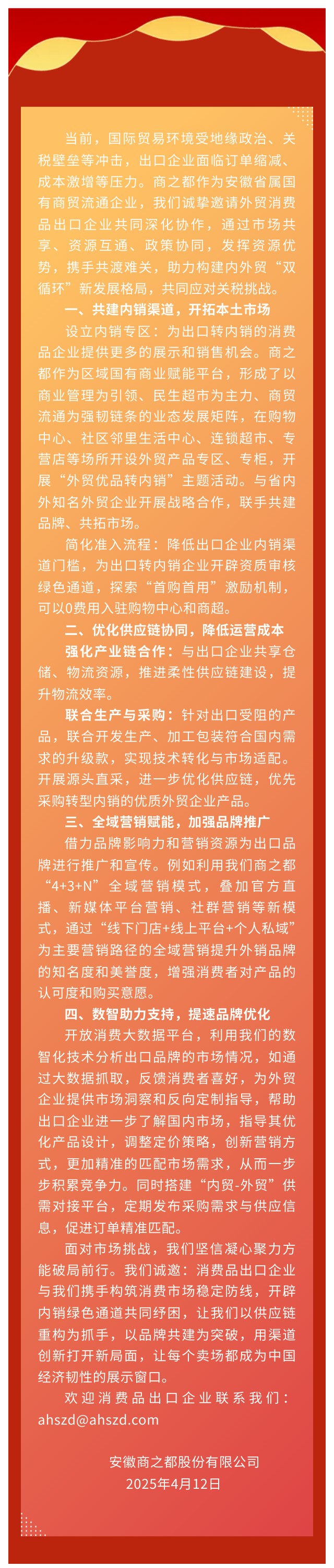 安徽商之都內(nèi)外貿(mào)攜手合作邀請書