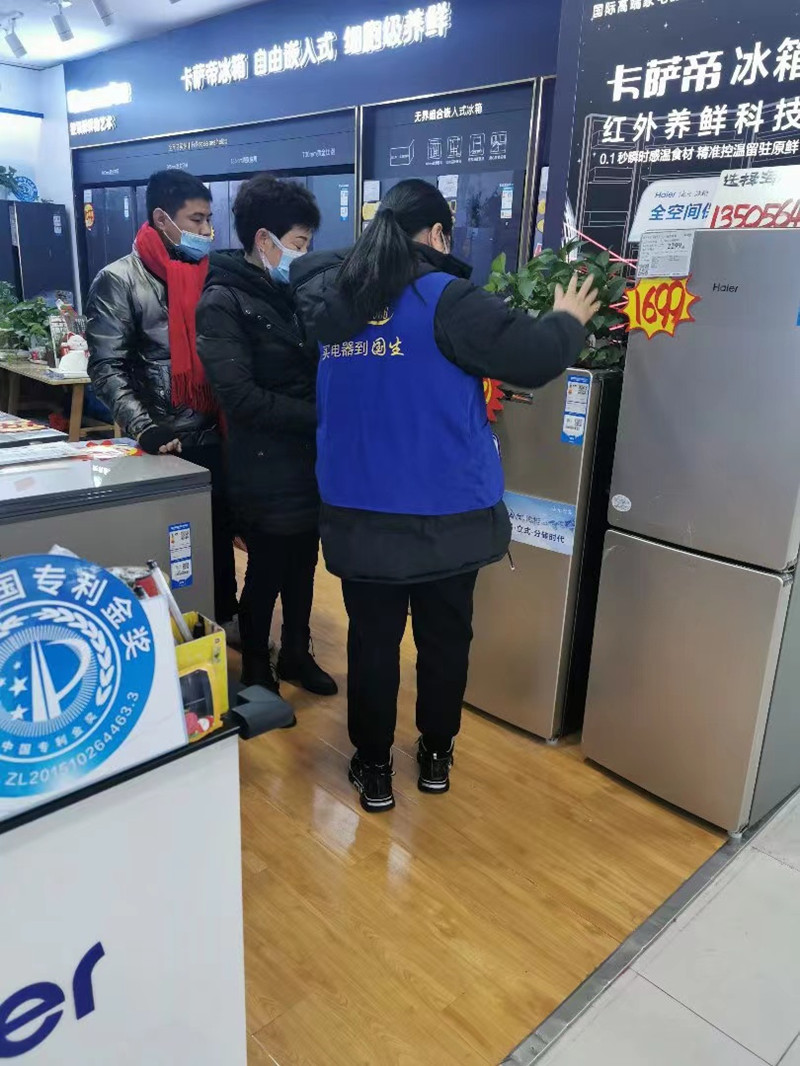 為給顧客帶來完美的購物體驗(yàn),國生電器霍邱商之都店員工們盡職盡責(zé)站好每一班崗。圖為海爾冰箱等產(chǎn)品成交現(xiàn)場(chǎng)。