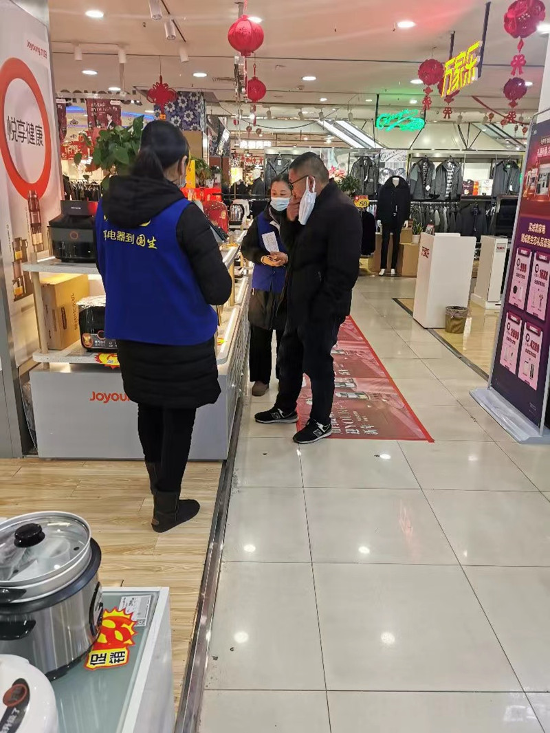 國生電器宣城商之都店員工沙莉正耐心為顧客講解電飯煲使用功能及操作步驟。