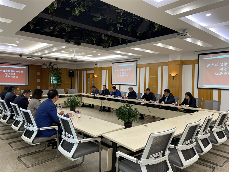 4月25日上午, 由徽商職業(yè)學院黨委委員、副院長許成玉帶隊的7人小組受邀來到紅府超市進行調研交流。紅府超市黨支部書記、總經(jīng)理陳航,副總經(jīng)理余曉哲、陸梅香等參加調研會議。