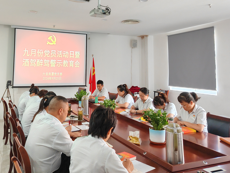 9月25日,六安商廈黨支部組織黨員、發(fā)展對(duì)象、入黨積極分子開展9月份黨員活動(dòng)日暨酒駕醉駕警示教育會(huì)。