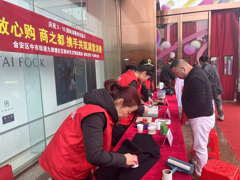 活動(dòng)現(xiàn)場(chǎng),商廈“V服務(wù)”志愿者為周邊居民及顧客提供了一系列免費(fèi)服務(wù),包括珠寶清洗、服裝熨燙、毛衫除球、手表消磁以及皮具保養(yǎng)等。同時(shí),還特邀叁玖名剪美發(fā)師為消費(fèi)者提供義剪服務(wù),進(jìn)一步優(yōu)化消費(fèi)者的購物體驗(yàn)。