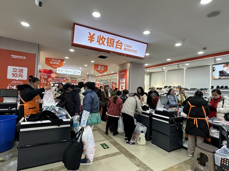 商廈內(nèi)外營造熱鬧喜慶的春節(jié)氛圍,吸引了顧客的購物熱潮。商廈新進駐品牌“和誠衣庫”,品類豐富配合每日秒殺、打折、滿減、買贈活動吸引了眾多消費者的到來;“美廉果超市”開展購物即贈水果券,三樓百貨類服飾購物即贈新年禮包等活動得到了廣大顧客的衷心喜愛和積極參與。