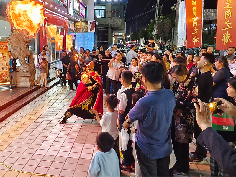 活動(dòng)現(xiàn)場(chǎng)氣氛火熱,各類表演輪番登場(chǎng):皮影戲演繹得活靈活現(xiàn)、川劇變臉神秘莫測(cè)引人稱奇,噴火表演點(diǎn)燃全場(chǎng)熱情、小丑互動(dòng)則以活潑姿態(tài)拉近距離。精彩演出吸引眾多市民駐足,不少家長(zhǎng)帶著孩子圍站觀看,孩子們看得目不轉(zhuǎn)睛,家長(zhǎng)們紛紛掏出手機(jī)記錄,還主動(dòng)上前與表演者合影?!昂苷鸷常『苌衩兀〔焕閲?guó)粹藝術(shù)?!币晃慌阃⒆佑^看的家長(zhǎng)如是說(shuō)道。