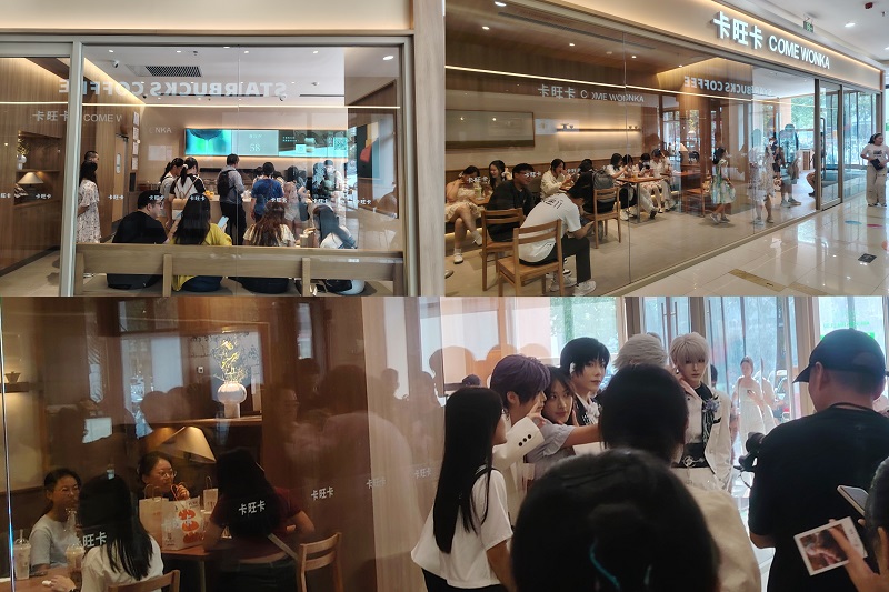 開業(yè)期間恰逢商場國風動漫嘉年華活動,不少年輕Coser專程到店打卡,解鎖這份專屬 “甜蜜驚喜”。走進店內,卡旺卡標志性的溫馨感撲面而來:整體空間明亮通透,柔和燈光交織著簡約又顯巧思的陳設,既讓點餐、等候的過程格外舒心,也順勢成了顧客拍照分享的 “網紅角落”。