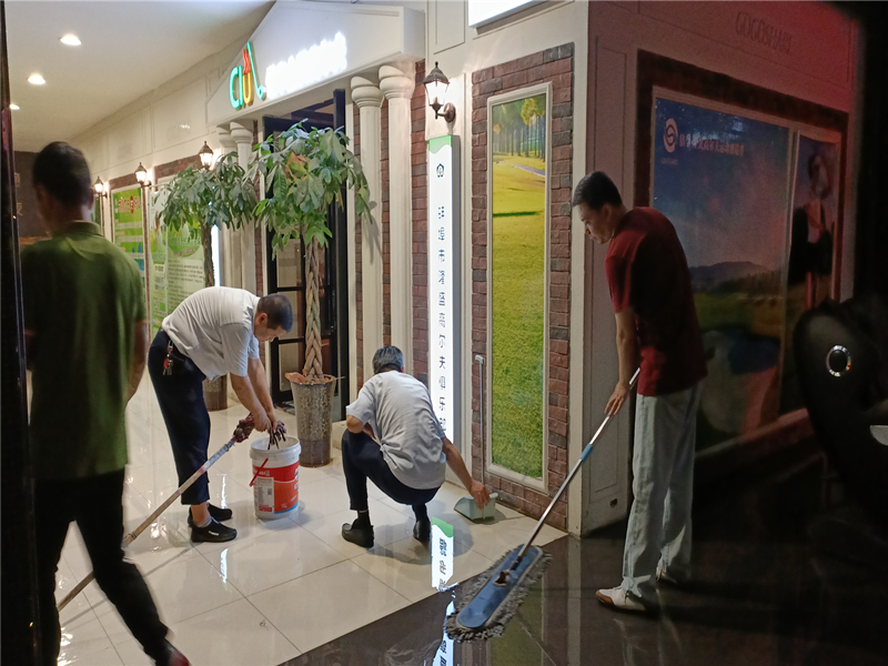 9月17日17點(diǎn)31分,蚌埠購物中心招商拓展部接六樓商戶室內(nèi)高爾夫球館報(bào)警,球館內(nèi)的消防噴淋漏水,水勢較大,室內(nèi)地面大面積積水。接到報(bào)警,招商拓展部立刻向后勤保障部分管領(lǐng)導(dǎo)張軍匯報(bào),張總立刻要求消防室關(guān)閉六樓消防水閥,同時(shí)安排后勤保障部電工和保潔人員及時(shí)清理地面積水??傊蛋嘟?jīng)理聞?dòng)嵰糙s到現(xiàn)場參與處理。